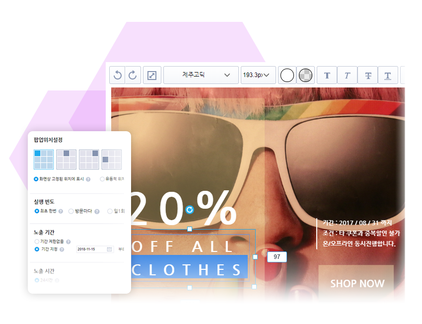 완벽하게 컨트롤이 가능한 팝업을 운영할 수 있습니다.