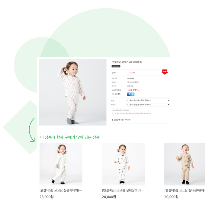 모바일과 웹, 그리고 장바구니용 상품 추천 서비스를 이용할 수 있습니다.