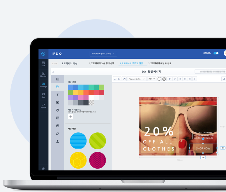 누구나 쉽게 팝업 메시지를 디자인할 수 있습니다.