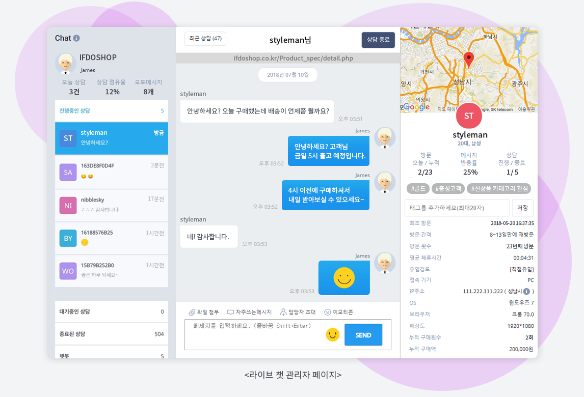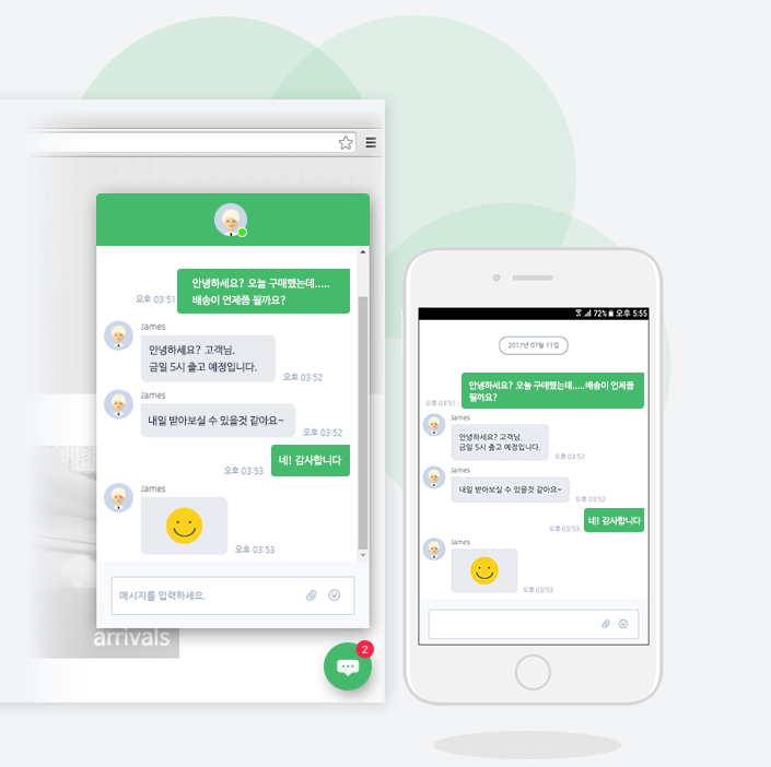 실시간으로 쉽고 편리하게 고객과 커뮤니케이션 하세요