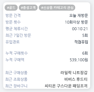 고객의 행동 이력 및 구매정보, 최근 문의 사항등